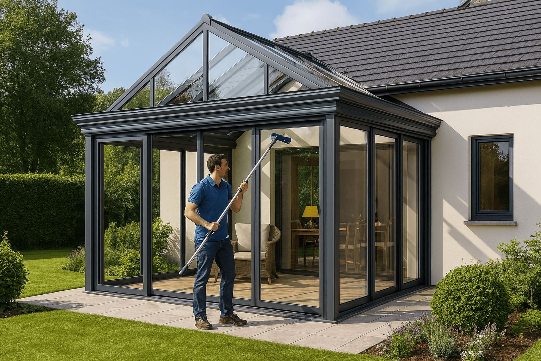 - Vitrages : utilisez un produit adapté pour éliminer poussière, feuilles et dépôts afin de conserver la luminosité naturelle.